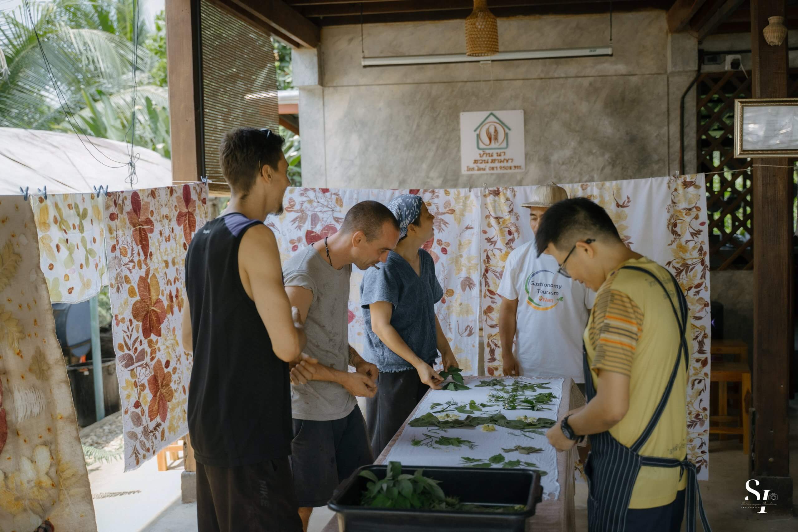 หมวก กระเป๋า โดยใช้วัสดุจากธรรมชาติอาทิใบไม้ ดอกไม้ หรือพืชสมุนไพร ฯลฯ สร้างลวดลายย้อมแต่งเติมสีสัน ผ่านการใช้เทคนิคการพิมพ์สีที่เป็นมิตรต่อสิ่งแวดล้อม ผสานกับการใช้ภูมิปัญญาท่องถิ่น แทนการใช้สารเคมีที่อาจก่อให้เกิดอันตราย ผลงานที่ได้เต็มเปี่ยมไปด้วยความทรงจําและเป็นเอกลักษณ์เฉพาะตัว